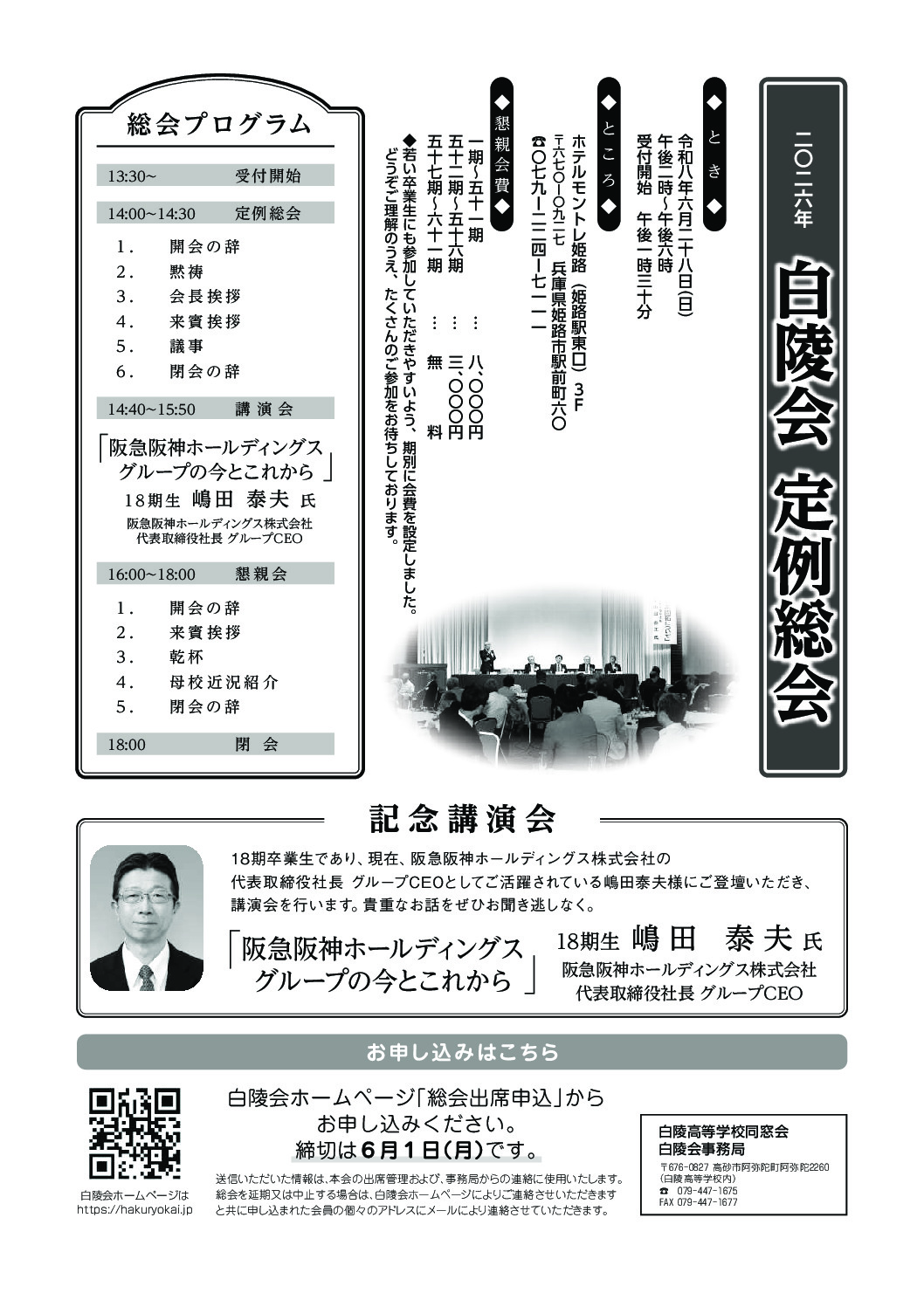 お申込みはこちら→2026年度 白陵会定例総会 申込フォーム